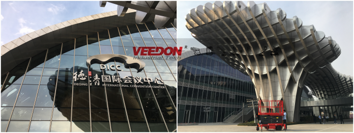 聯(lián)合國世界地理信息大會(huì)暨德清國際會(huì)議中心此次訂購Veedon威登公司液壓升降機(jī)登高車主要用于聯(lián)合國地理信息大會(huì)會(huì)議中心及展會(huì)展覽中心