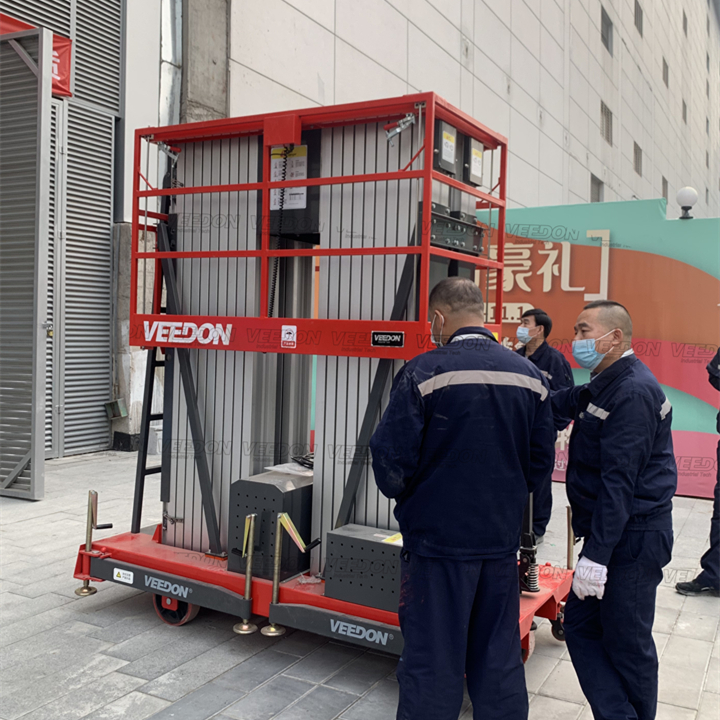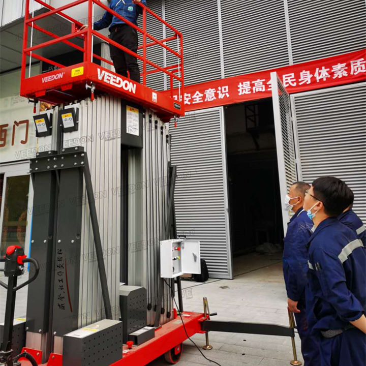 高空維修檢修設(shè)備使用VEEDON多桅桿式高空作業(yè)升降平臺(tái),桅桿式高空作業(yè)升降平臺(tái)采用鋁合金材質(zhì)機(jī)身,整機(jī)輕巧,方便移動(dòng)、運(yùn)輸,工作平臺(tái)上下方均安裝操作按鈕及應(yīng)急停止按鈕,輕盈的結(jié)構(gòu),精致的機(jī)身,適用于酒店、商場(chǎng)、禮堂、會(huì)場(chǎng)、議事廳、工業(yè)工廠等中高端場(chǎng)所,多桅柱分為三桅、四桅和六桅,分別因其而設(shè)計(jì),為了滿足客戶對(duì)設(shè)備高度和作業(yè)穩(wěn)定性的要求而設(shè)計(jì),輕盈的外觀設(shè)計(jì)能在極小的空間范圍內(nèi)發(fā)揮最高的舉升能力,設(shè)備型號(hào)VAWP0216,四桅柱式高空作業(yè)平臺(tái),工作高度18m,平臺(tái)高度16m,載重200kg,交流AC,牽引自行走裝置!