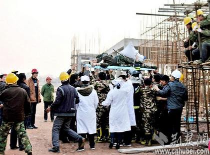 孝昌縣消防中隊(duì)排長(zhǎng)熊成虎介紹,他們到達(dá)現(xiàn)場(chǎng)時(shí),發(fā)現(xiàn)該民工受傷較嚴(yán)重,兩根鋼筋分別插在腰間和大腿處,他們采用液壓破拆器材將鋼筋剪斷。