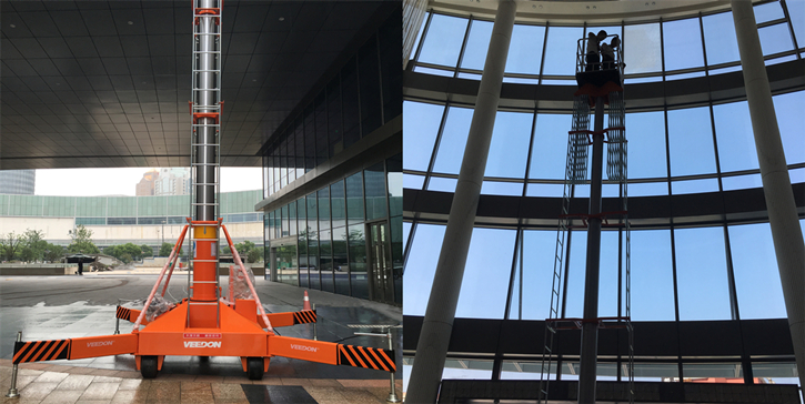 Veedon 套筒式液壓高空作業(yè)升降機(jī),簡易,方便,快捷的登高作業(yè)平臺登高設(shè)備。雙防轉(zhuǎn)式結(jié)構(gòu),雙速下降系統(tǒng),最大升高52米,穩(wěn)定可靠,美觀。為“神舟”號飛船安裝對接特制平臺外延伸高空作業(yè)平臺登高設(shè)備。