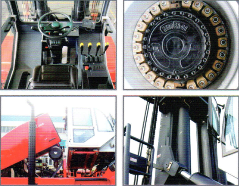 大噸位叉車按照現(xiàn)代人體工程學(xué)設(shè)計(jì)思路,整車在多種環(huán)境下更具操控性,已操作舒適度為設(shè)計(jì)核心,安裝有可傾翻駕駛室 可調(diào)節(jié)座椅安全帶,監(jiān)控?cái)z像頭。