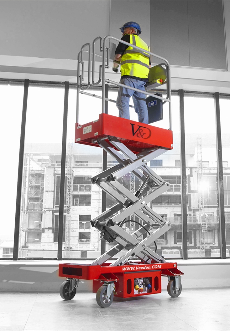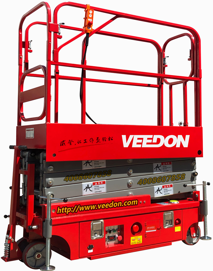 威登Veedon小型剪叉式高空作業(yè)平臺(tái)質(zhì)量輕、體積小單人可以輕松靈活的移動(dòng)至作業(yè)點(diǎn);業(yè)內(nèi)最小的平臺(tái)尺寸1.15m×0.70m,適合在狹小的空間作業(yè);抽屜式底盤方便維護(hù);故障代碼自動(dòng)顯示方便檢修。