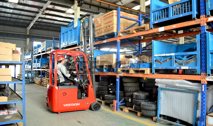 應(yīng)用工況:VFT三支點平衡重叉車是一款輕型叉車,由于自身尺寸小、重量輕,更適合狹小空間及樓層作業(yè)。水平搬運 較窄通道內(nèi)堆垛