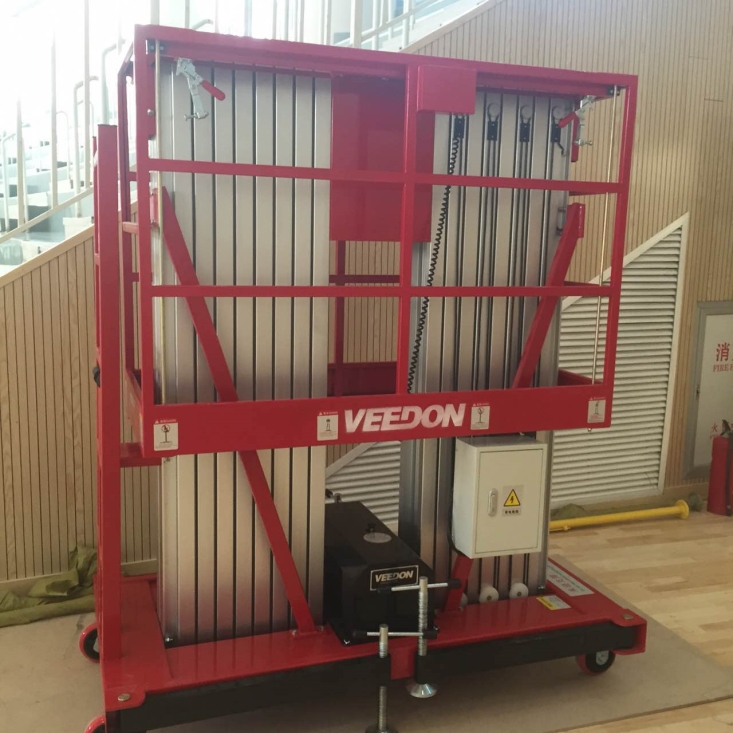 Veedon桅桿式高空作業(yè)升降平臺(tái)采用鋁合金材質(zhì)機(jī)身,整機(jī)輕巧,方便移動(dòng)、運(yùn)輸,工作平臺(tái)上下方均安裝操作按鈕及應(yīng)急停止按鈕,輕盈的結(jié)構(gòu),精致的機(jī)身,多適用禮堂、會(huì)場、議事廳等中高端場所,雙桅伸縮柱結(jié)構(gòu),該型高空作業(yè)平臺(tái)作業(yè)面積大載荷可達(dá)200KG,雙桅柱高空作業(yè)平臺(tái)車長尺寸小,可通過普通載客電梯,為了方便運(yùn)輸與進(jìn)出大門,工作圍欄可自動(dòng)升降達(dá)到最低高度,Veedon威登雙桅桿柱型高空作業(yè)平臺(tái),是一款經(jīng)濟(jì)型大平臺(tái)可雙人操作的高空作業(yè)平臺(tái),高強(qiáng)度高品質(zhì)鋼制底座,即使是惡劣的工作環(huán)境,也一樣可安全使用,寬大的作業(yè)平臺(tái),讓您更便捷地?cái)y帶工具和更大的活動(dòng)空間,雙控制系統(tǒng),不管是地面、還是工作平臺(tái)籃,您都可以輕松操作,只有威登可以為您提供如此人性化設(shè)計(jì)的高空作業(yè)平臺(tái)。