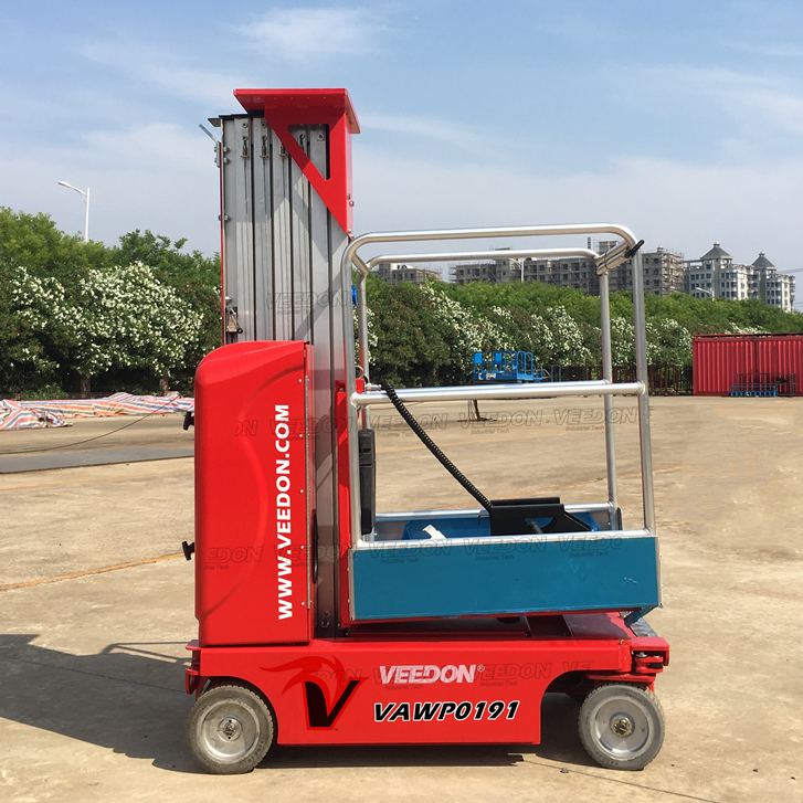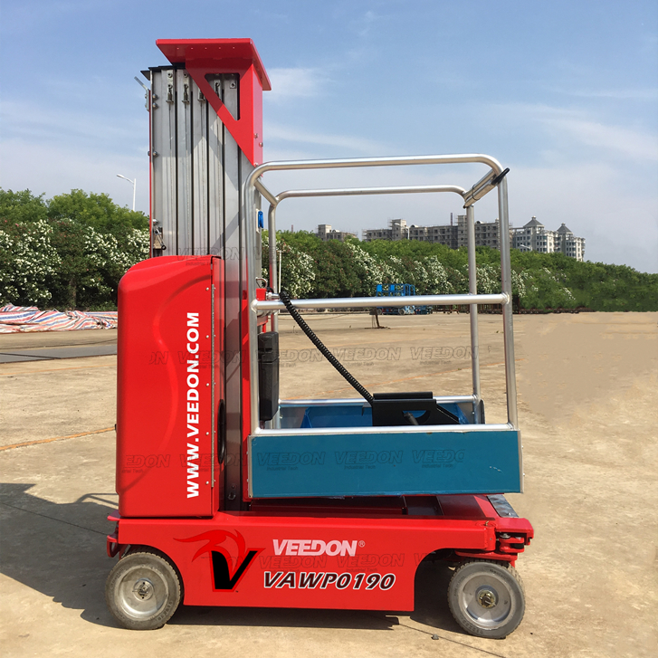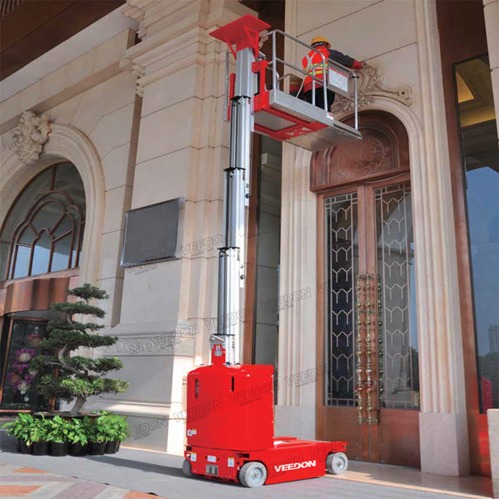 Veedon威登 自行走單桅桿高空作業(yè)平臺具有機身尺寸小而緊湊,移動方便等特點,其他升降機升降平臺及自行走功能,最大程度地提高了工作效率,廣泛應用于商城,超市,倉儲及工業(yè)等領域。獨特的零半徑內(nèi)轉(zhuǎn)設計,在狹窄空間靈活應用。具有30%的爬坡能力,彈簧及液壓釋放制動系統(tǒng)以及25厘米厚質(zhì)無痕耐磨橡膠輪胎,讓駕駛操作高空作業(yè)更加輕松。威登Veedon 為用戶提供高品質(zhì),低成本的專業(yè)高空作業(yè)設備。