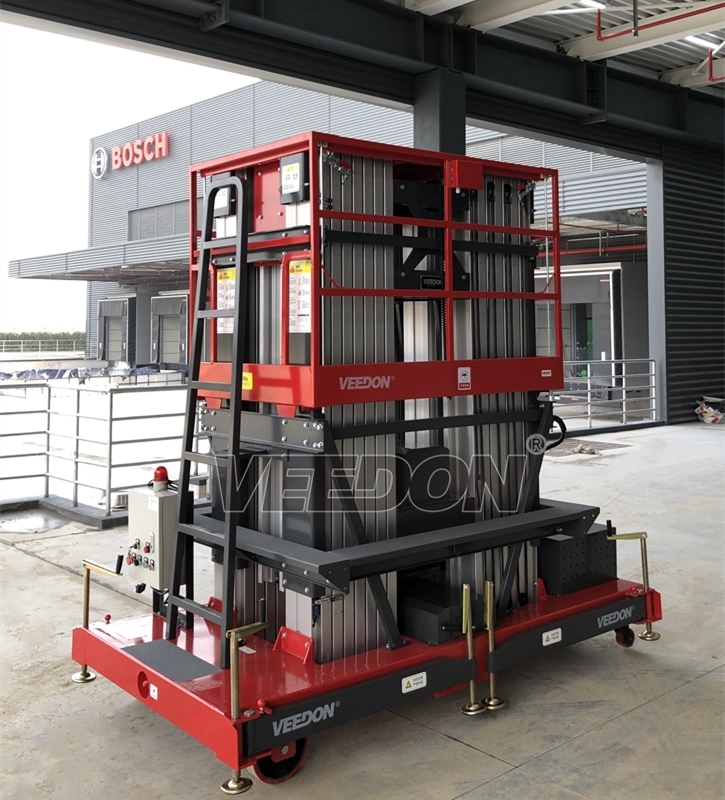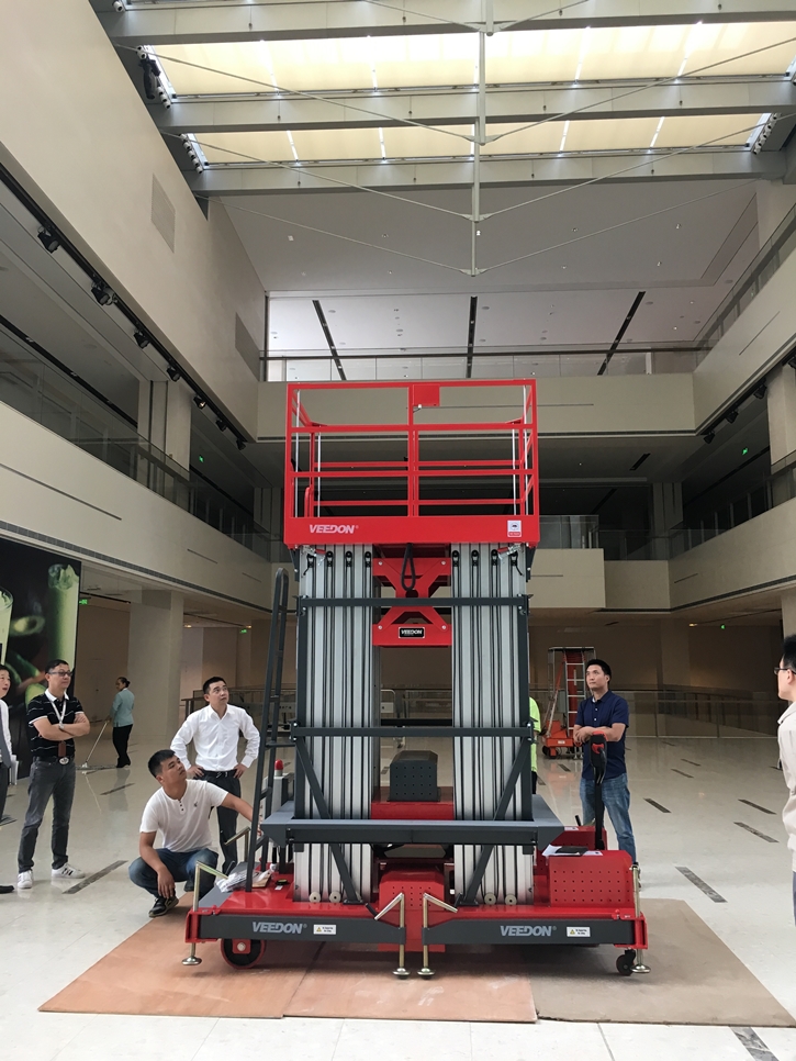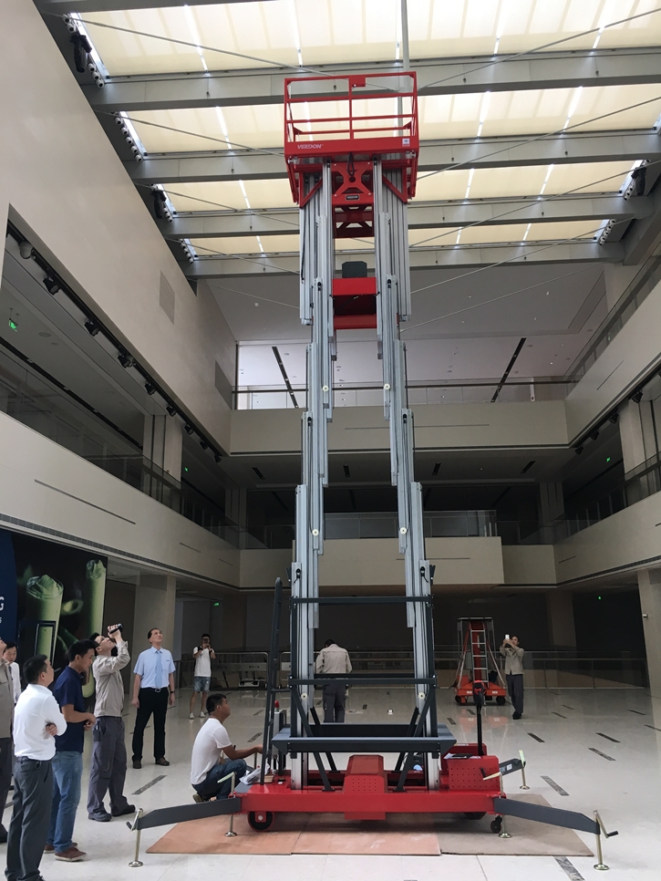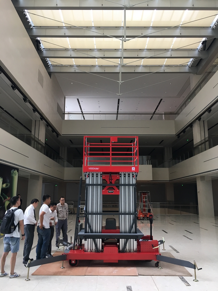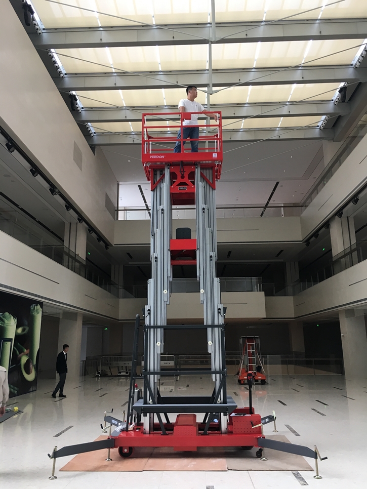 Veedon桅桿式高空作業(yè)升降平臺采用鋁合金材質(zhì)機身,整機輕巧,方便移動、運輸,工作平臺上下方均安裝操作按鈕及應(yīng)急停止按鈕,輕盈的結(jié)構(gòu),精致的機身,適用于酒店、商場、禮堂、會場、議事廳、工業(yè)工廠等中高端場所,多桅柱分為三桅、四桅和六桅,分別因其而設(shè)計,為了滿足客戶對設(shè)備高度和作業(yè)穩(wěn)定性的要求而設(shè)計,輕盈的外觀設(shè)計能在極小的空間范圍內(nèi)發(fā)揮最高的舉升能力